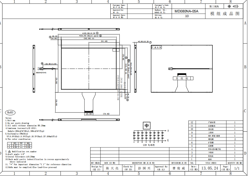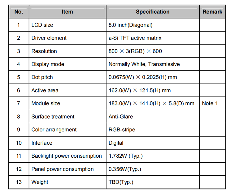 品名:8寸普清液晶屏(800*600)